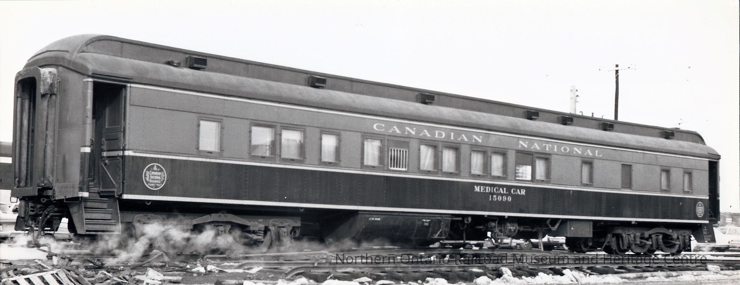 Black and white photograph of Canadian National Medical Car no. 15090.Collection