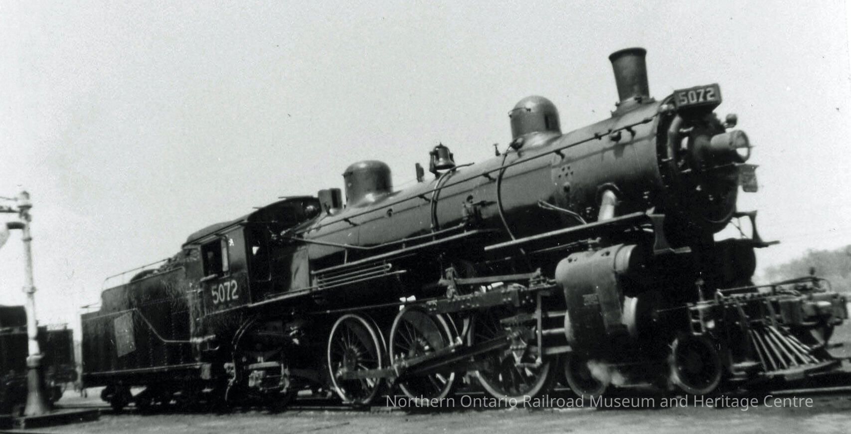 Digital copy of a black and white photograph of Canadian National Railways locomotive no. 5072.Collection