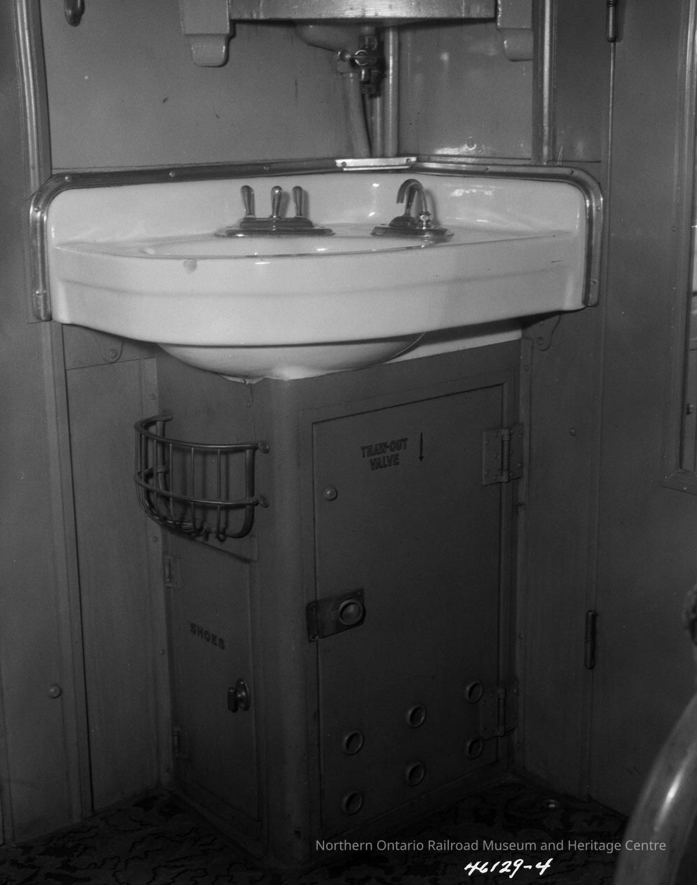 Photograph, Canadian National Railways (CNR) car - sink in bathroom.Collection