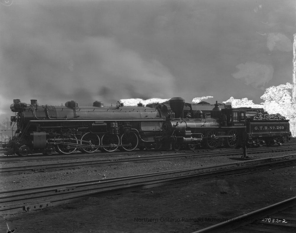 Photograph, Canadian National Railways (CNR) Loco 6100 Confederation with Loco Trevithick Grand Trunk Railway No. 269.Collection