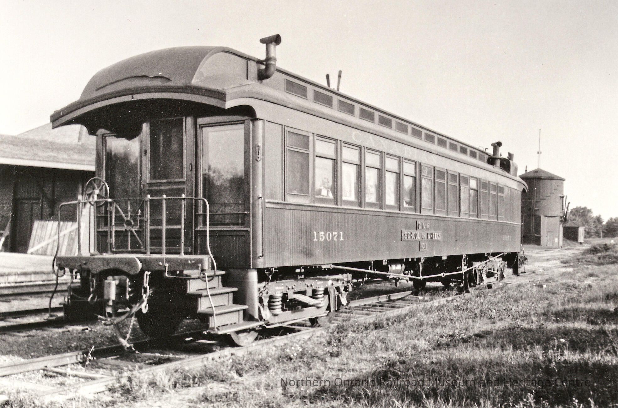 Digital reproduction of a black and white photograph of Canadian National Railways 15071 school car no. 1.