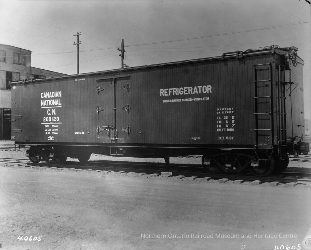Photograph, Canadian National Railways Refrigerator car #209120 with Divided Basket Bunker-Ventilator, built in May, 1937.Collection