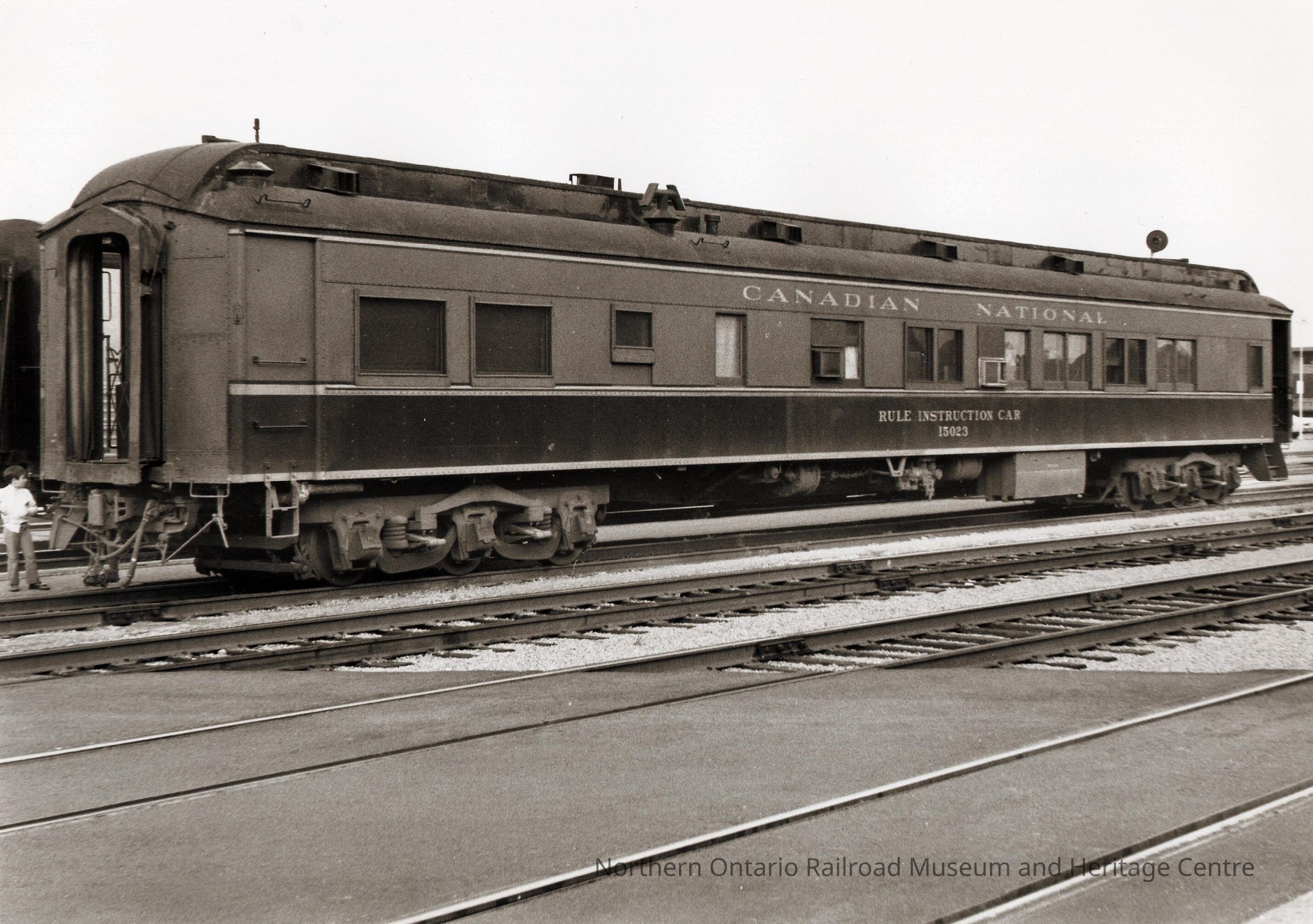 Black and white photograph of the Canadian National Rule Instruction Car no. 15023.Collection