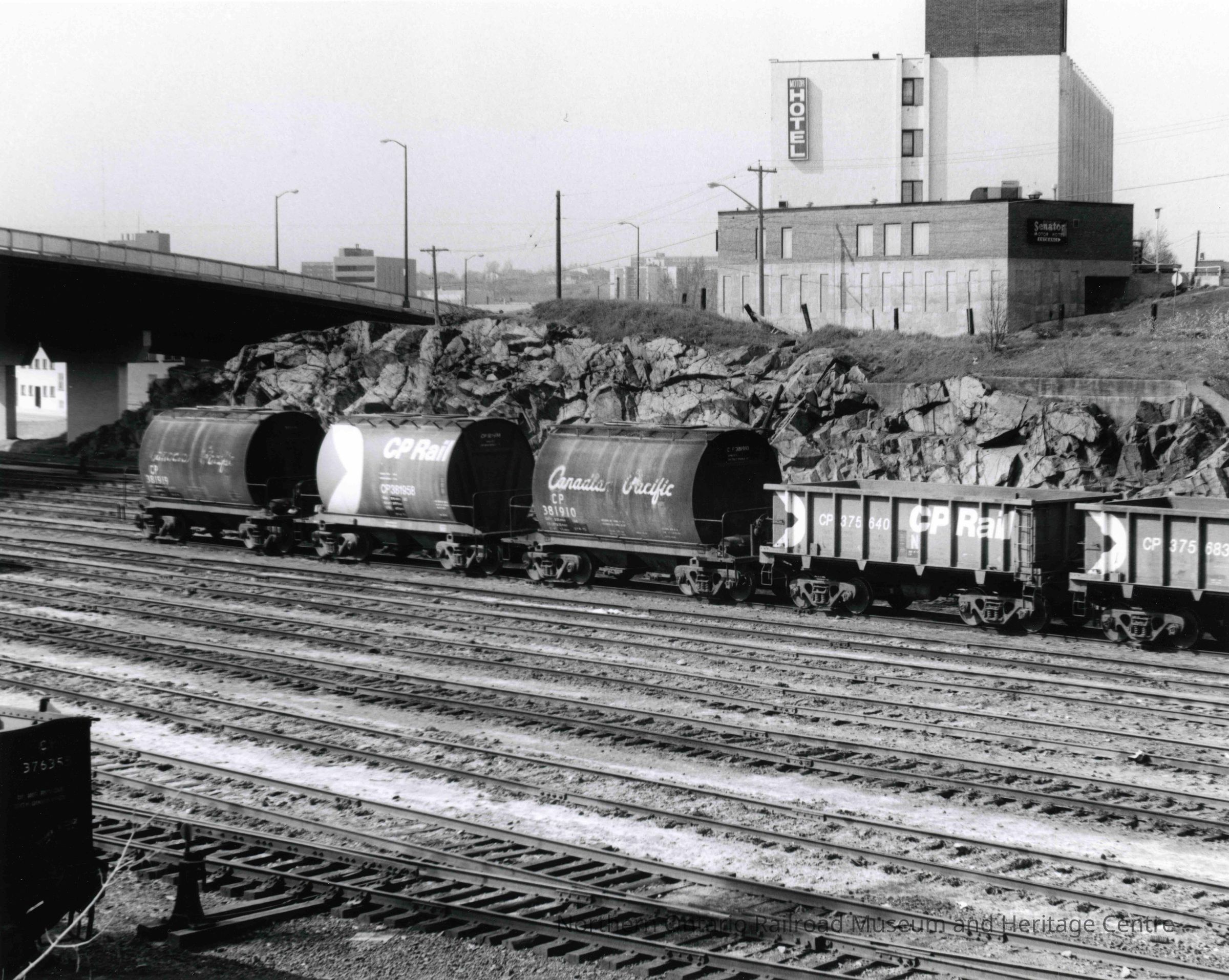 Photograph, Canadian Pacific Rolling Stock near Senator Motel, May 18, 1975, Photo by Gordon Jomini.Collection