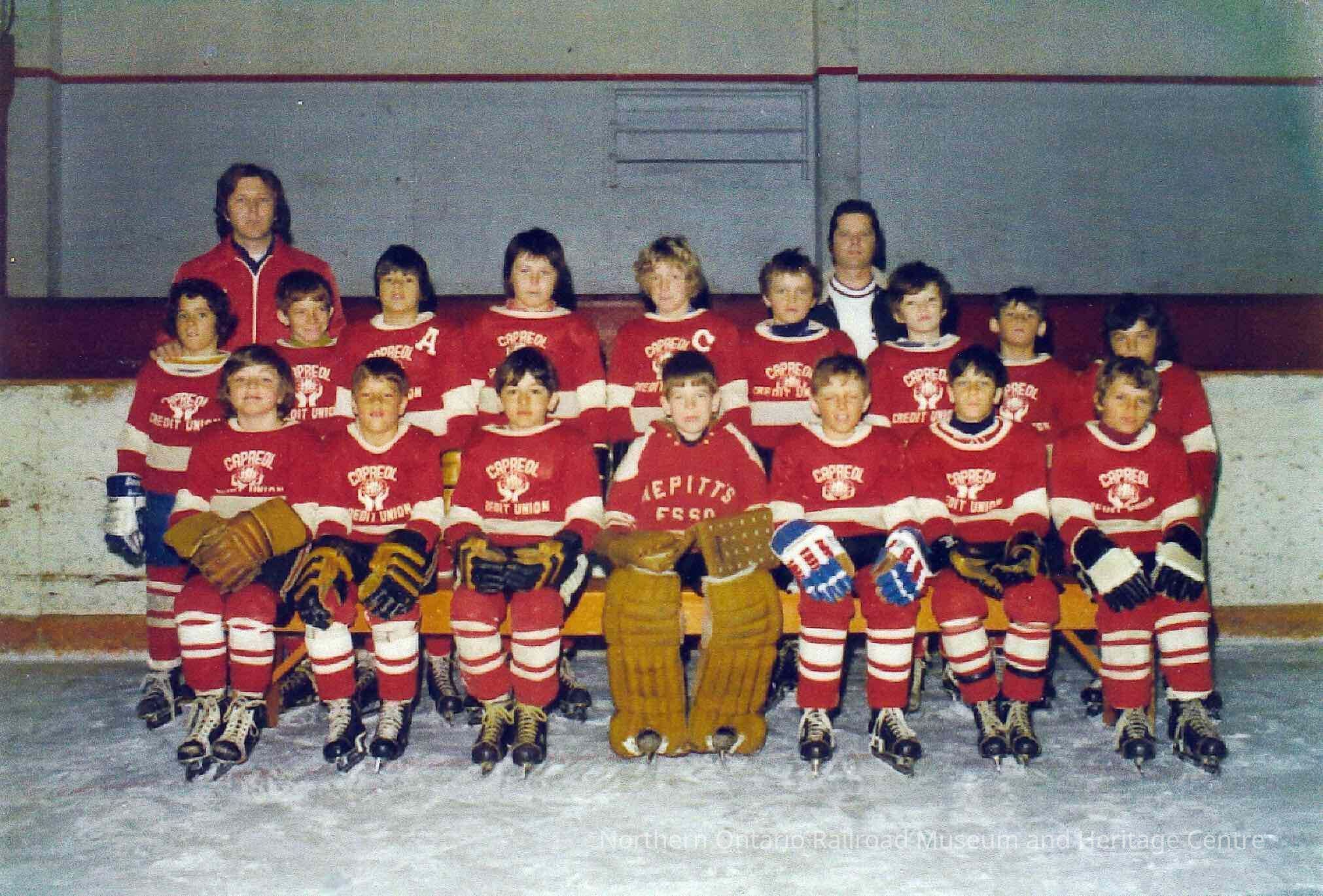 Colour- A group photograph of a Capreol Hockey Team sponsored by the Capreol Credit Union.Collection