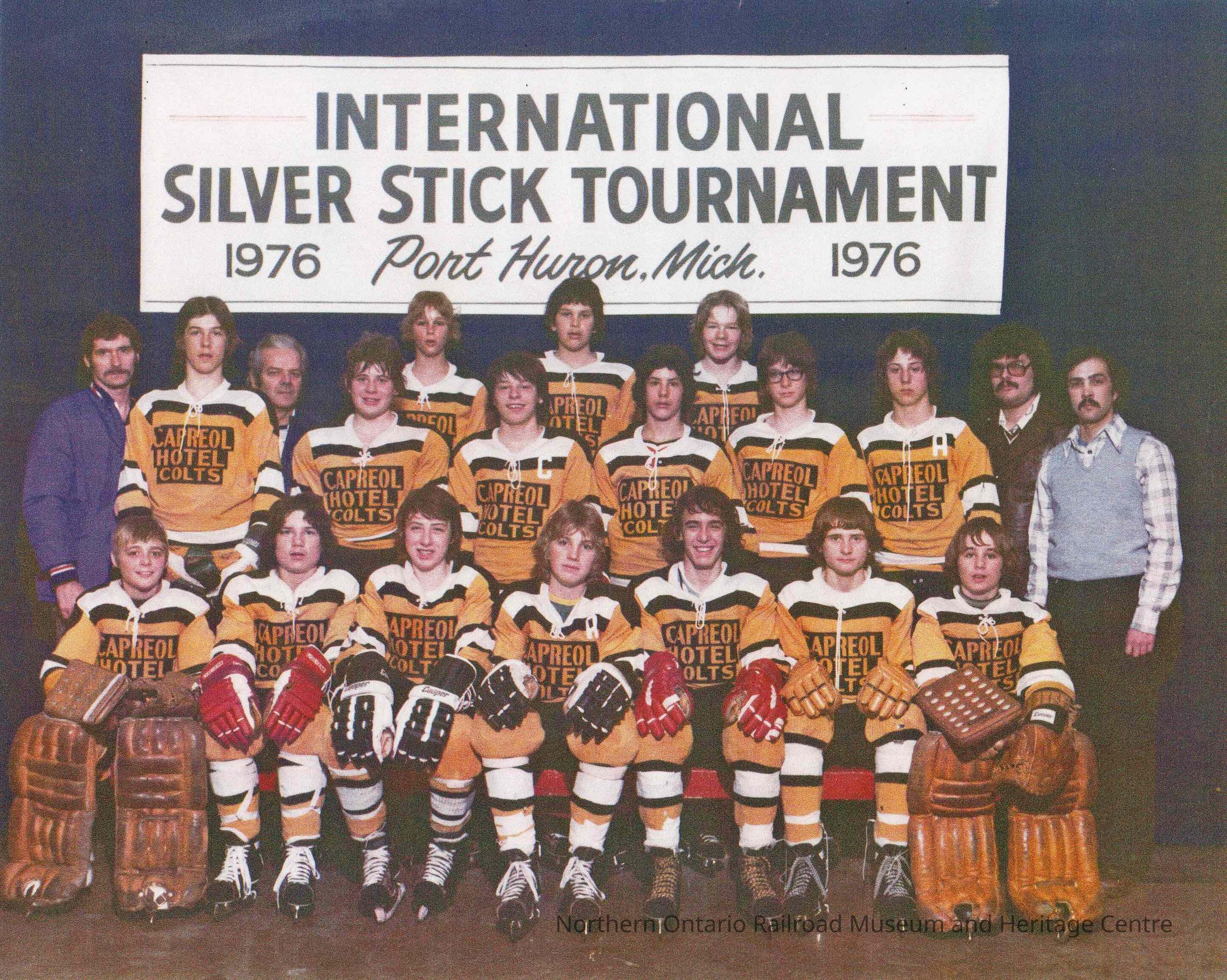 Photograph- Capreol Hotel Colts Hockey Team at International Silver Stick Tournament, 1976, Group photograph. Unknown PeopleDescription