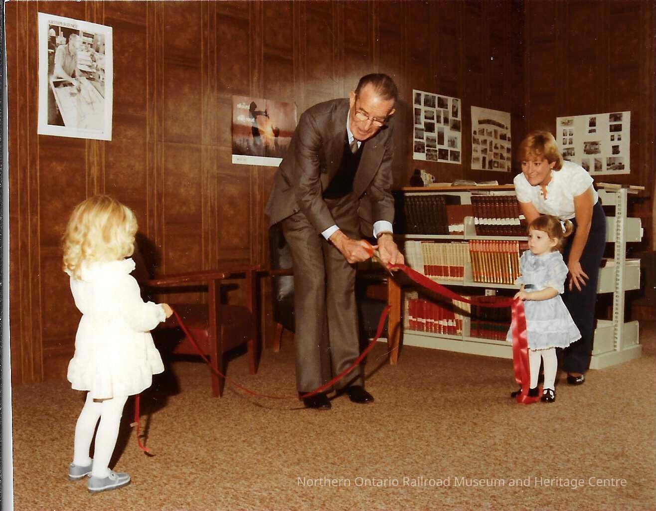 Capreol Reference room opening with Norm Fawcett, Bev rose Cynthia Fawcett and Julie SorelCollection