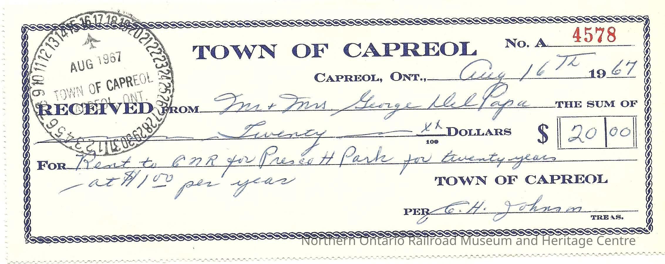 Photograph, Cheque, Mr. and Mrs. George Del Papa, Prescott Park.Collection