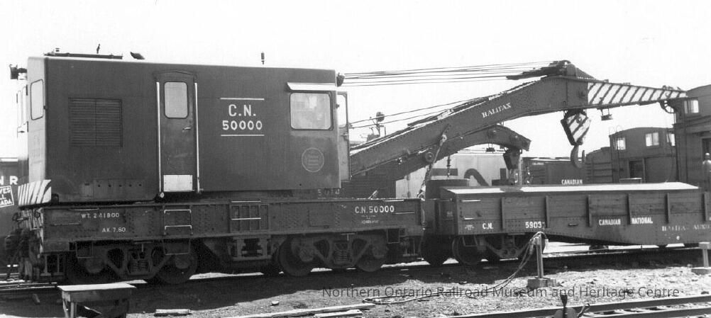 Digital copy of a black and white photograph of Canadian National Railways 160 ton hoist, CN 50000.Collection