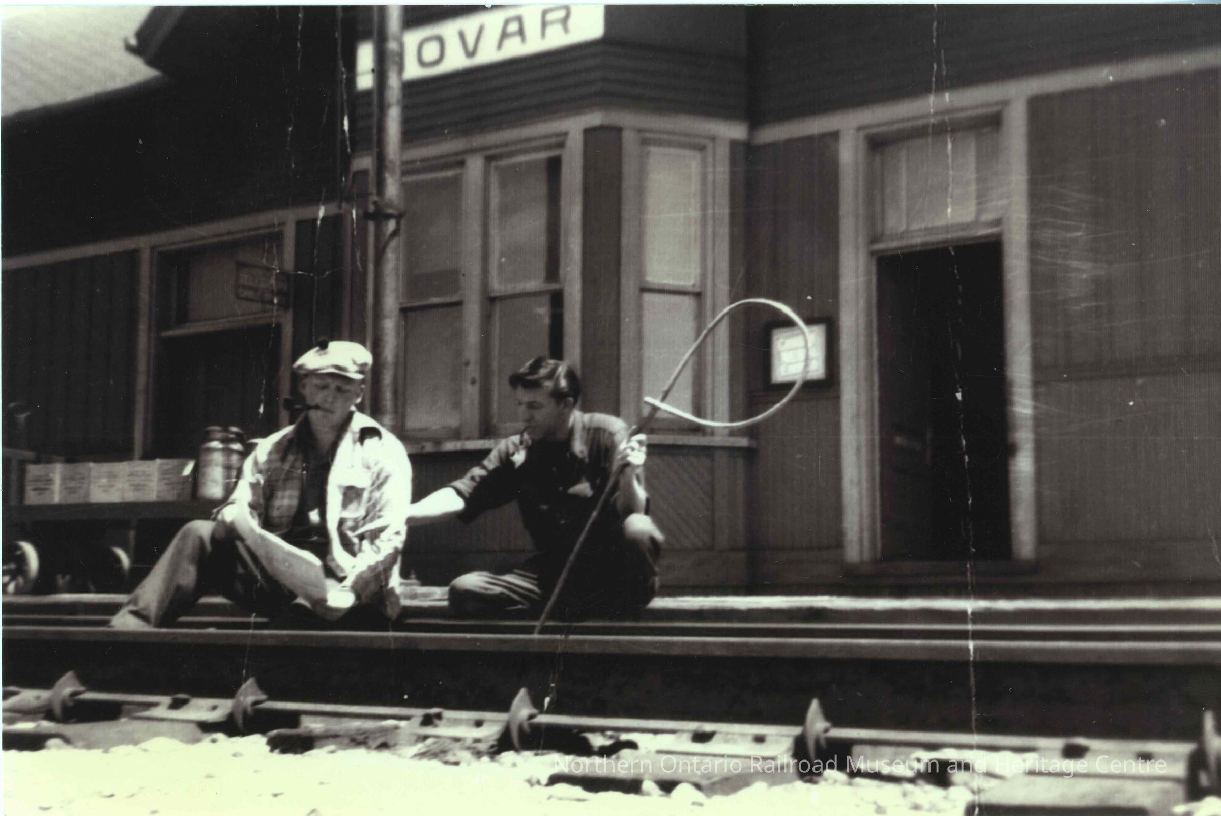 Photograph, CNR Employees Steve Elliott, Frank Holinger, Student Telegrapher, 1953.Collection
