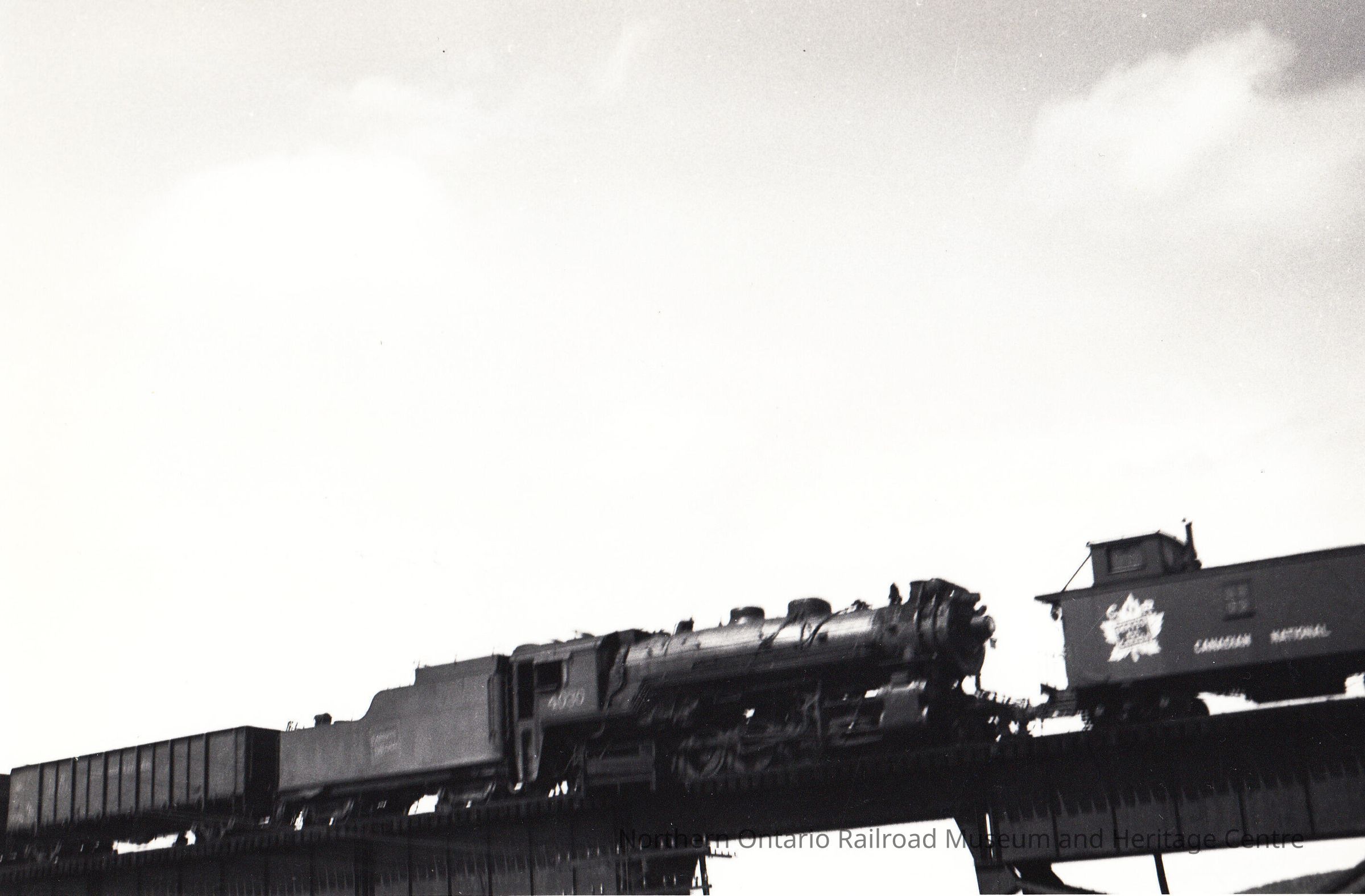 Photograph: "CNR Engine no. 4030 and Van CNR on bridge."Description