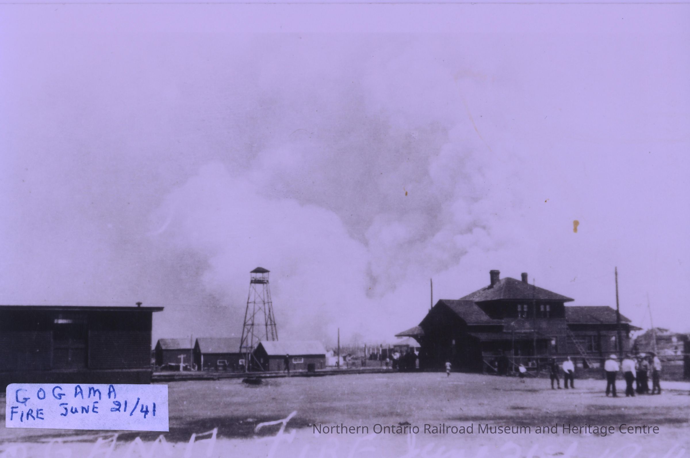 Photograph, CNR Station at Gogama, Fire, June 21st 1941.Collection