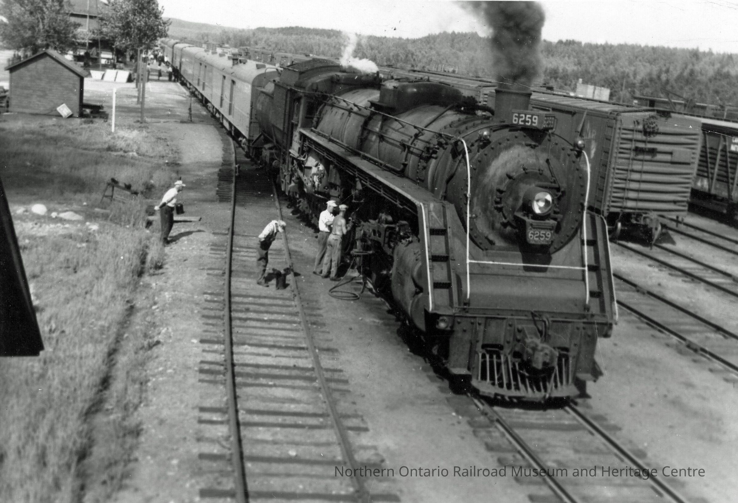 Photograph, CNR Super Continental, Steam Powered 4-8-4 6259, (First and only time), Armstrong, Ontario, July 7th 1955.Collection