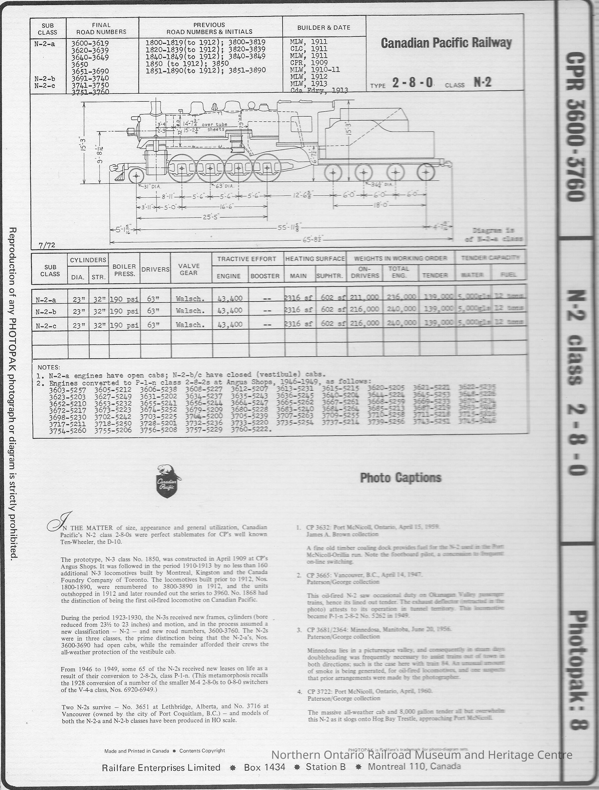 Photograph, CPR Diagram, M-2 Class Locomotive 2-8-0.Collection