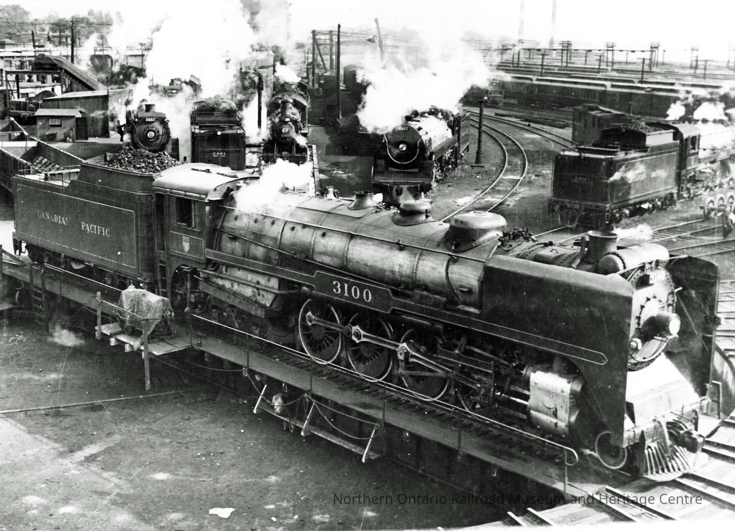 Photograph: "CPR Engine no. 3100 on Turntable at Glen Yard Montreal"Description