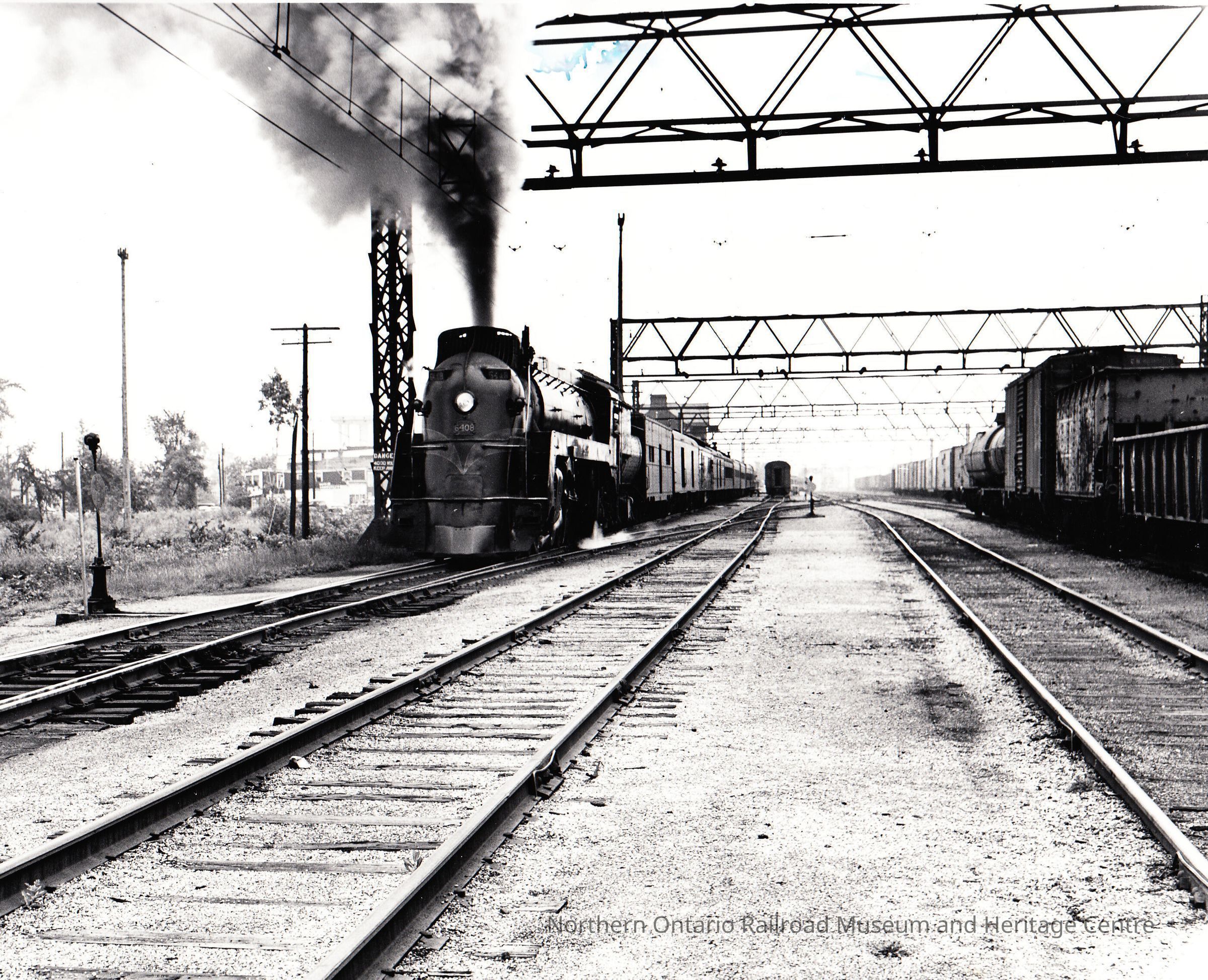 Black and White- CPR Engine no. 6408, hauling Grand Trunk Western train #17 leaves Port Huron station, bound for Chicago.Collection