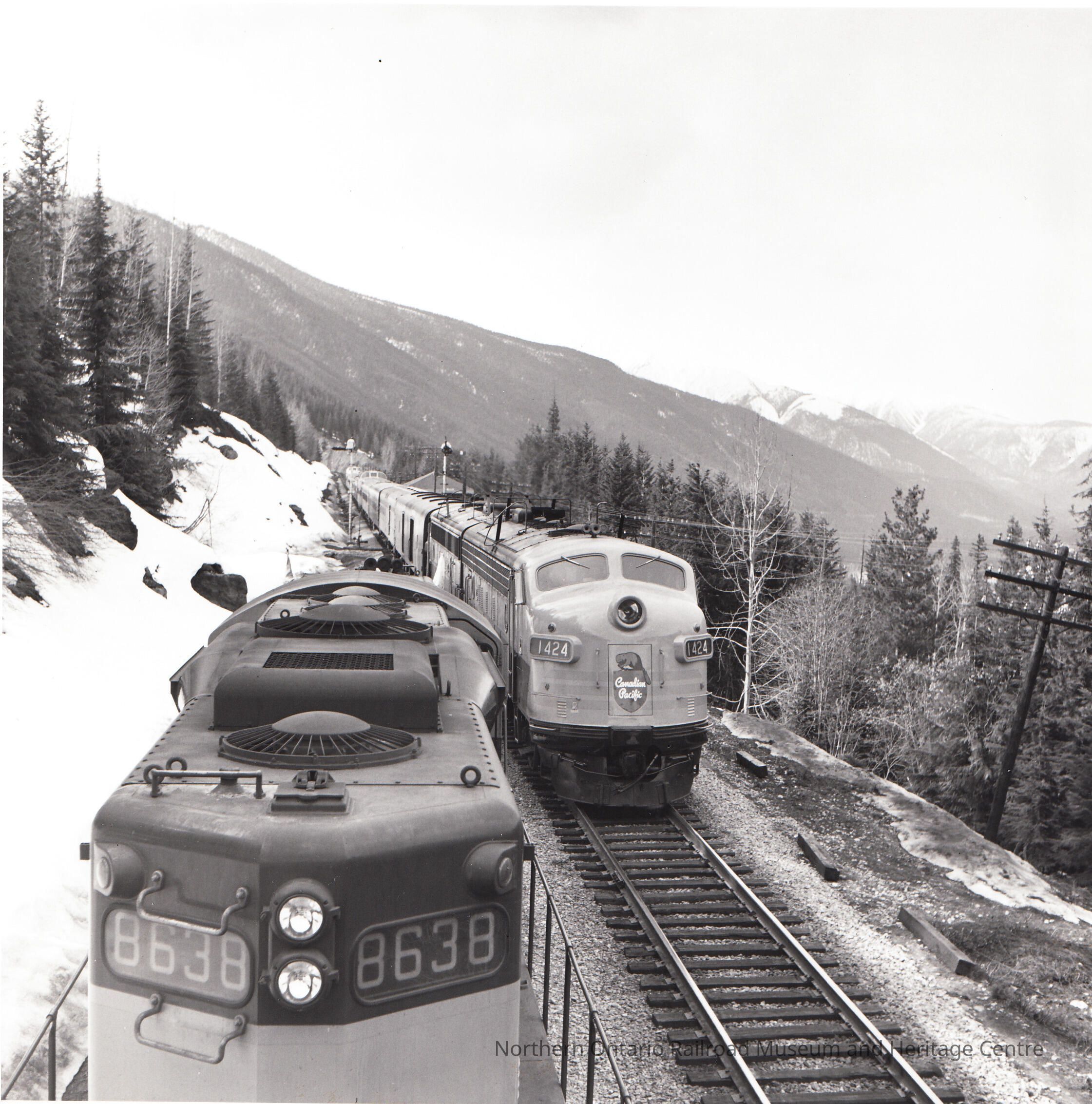 Black and White- CPR Engines 8638 and 1424, on parallel track traveling in opposite directions, pass each other.Collection