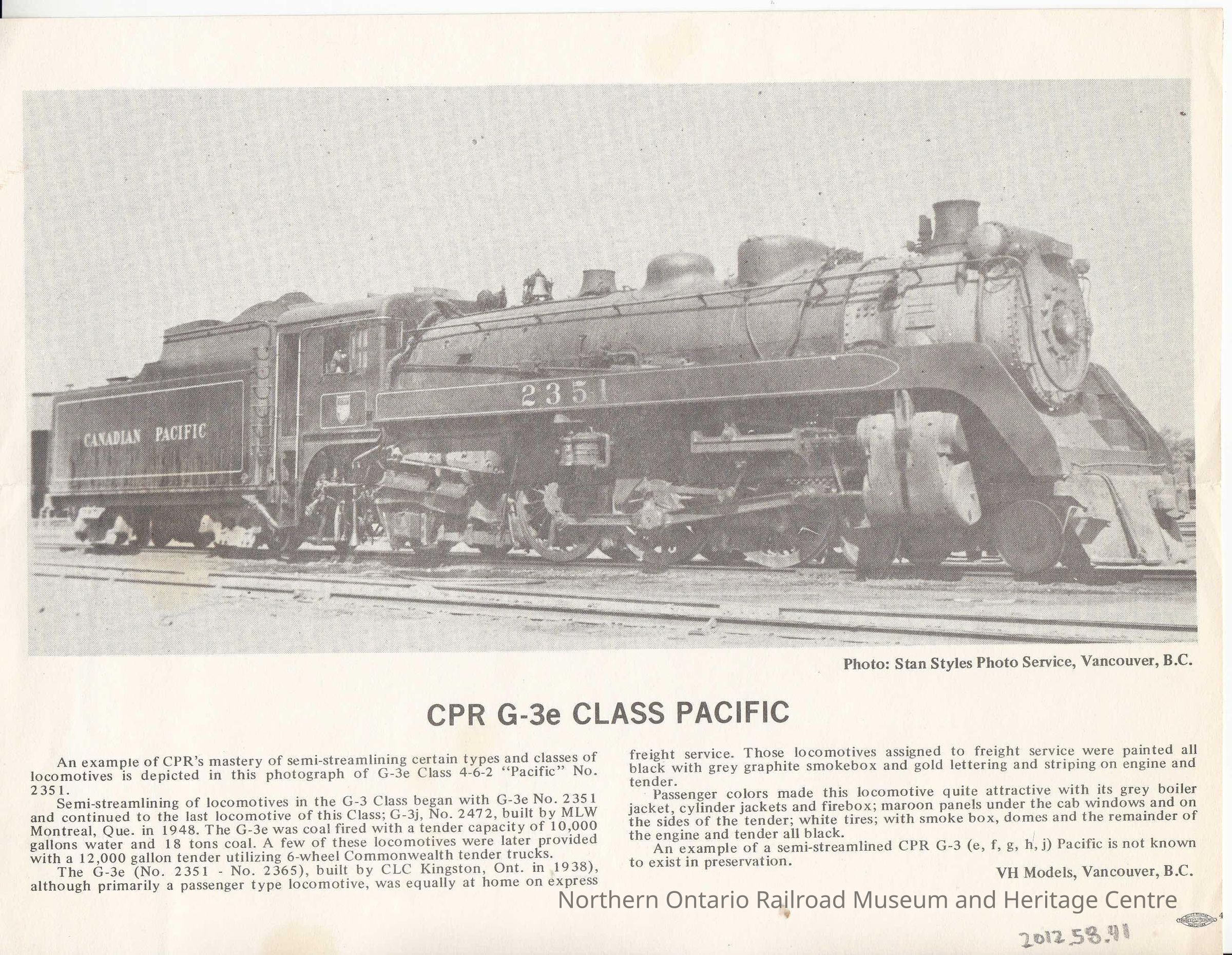 Photograph, CPR G-3e Class PacificCollection