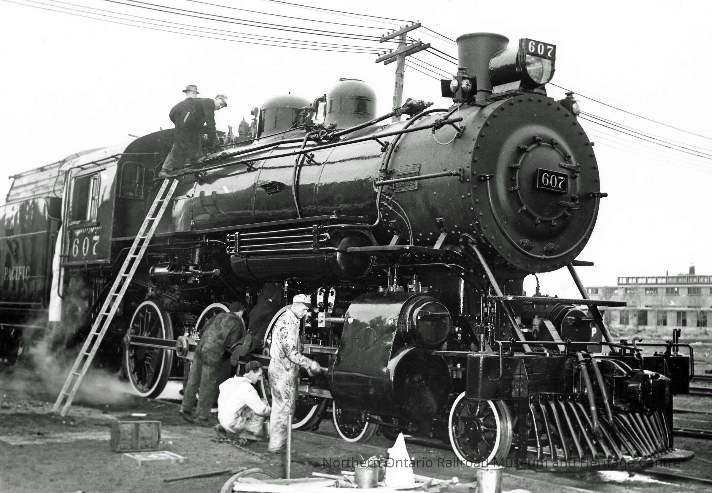 Photograph: CPR Workers Working Around Engine no. 607Description