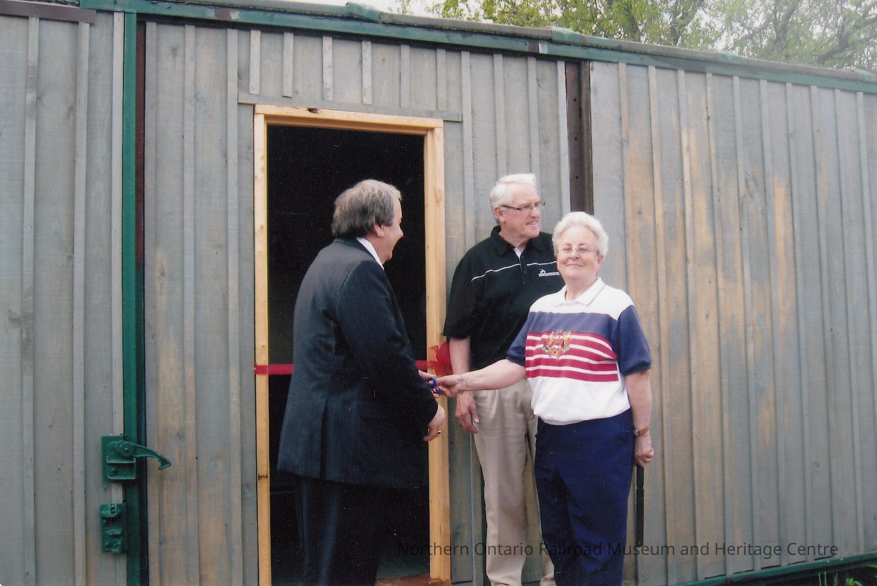 Photograph- Cutting the Ribbon of the Boxcar HouseDescription