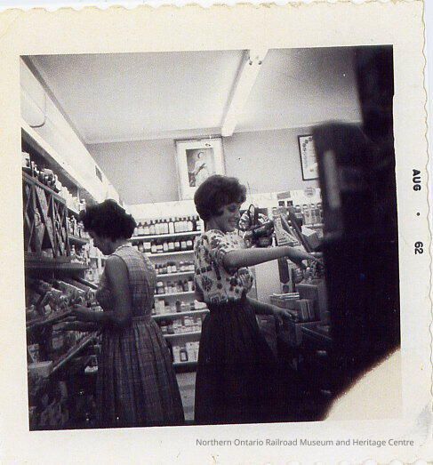 Photograph, Dippe Carisse, Mrs. Kristolovich, Lalonde's Drug Store, August 1962.Collection