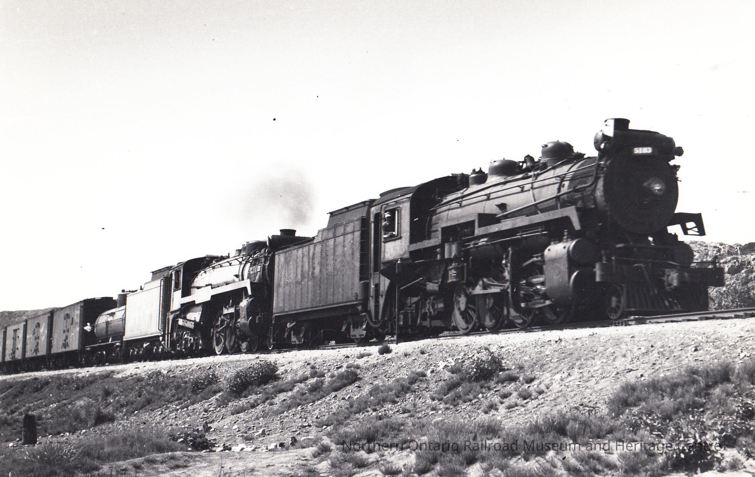 Black and White- A double header engine, lead by Engine no. 5183, pull a series of boxcars.Collection