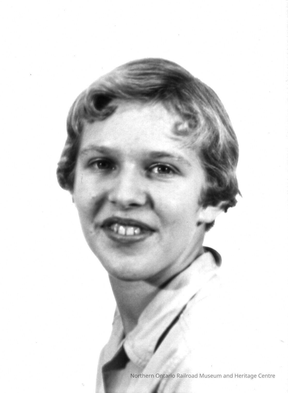 Digital reproduction of a black and white photograph of Elizabeth Hill (nee McKay), 1955.