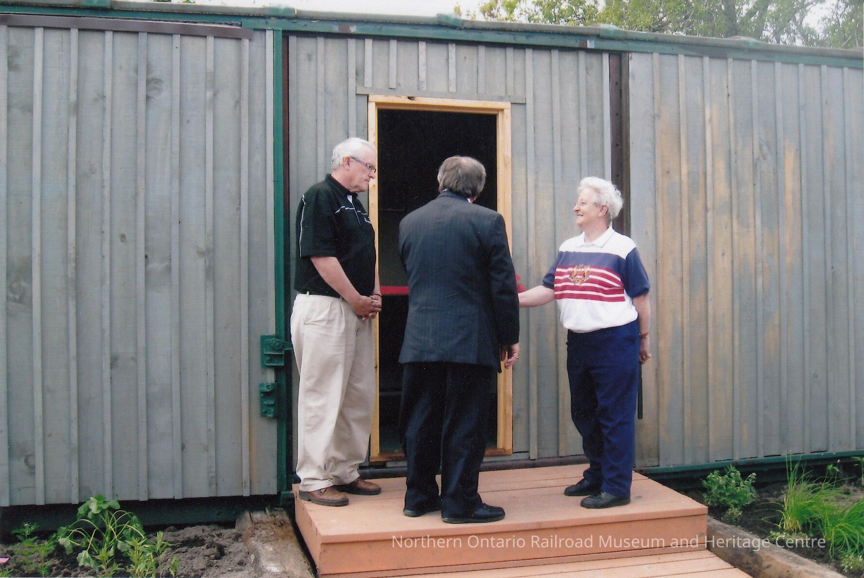 Aileen Thompson, MP John Rodriguez, and Stu Thomas examine the newly opened boxcar house at the Northern Ontario Railroad Museum and Heritage Centre in Capreol.Collection