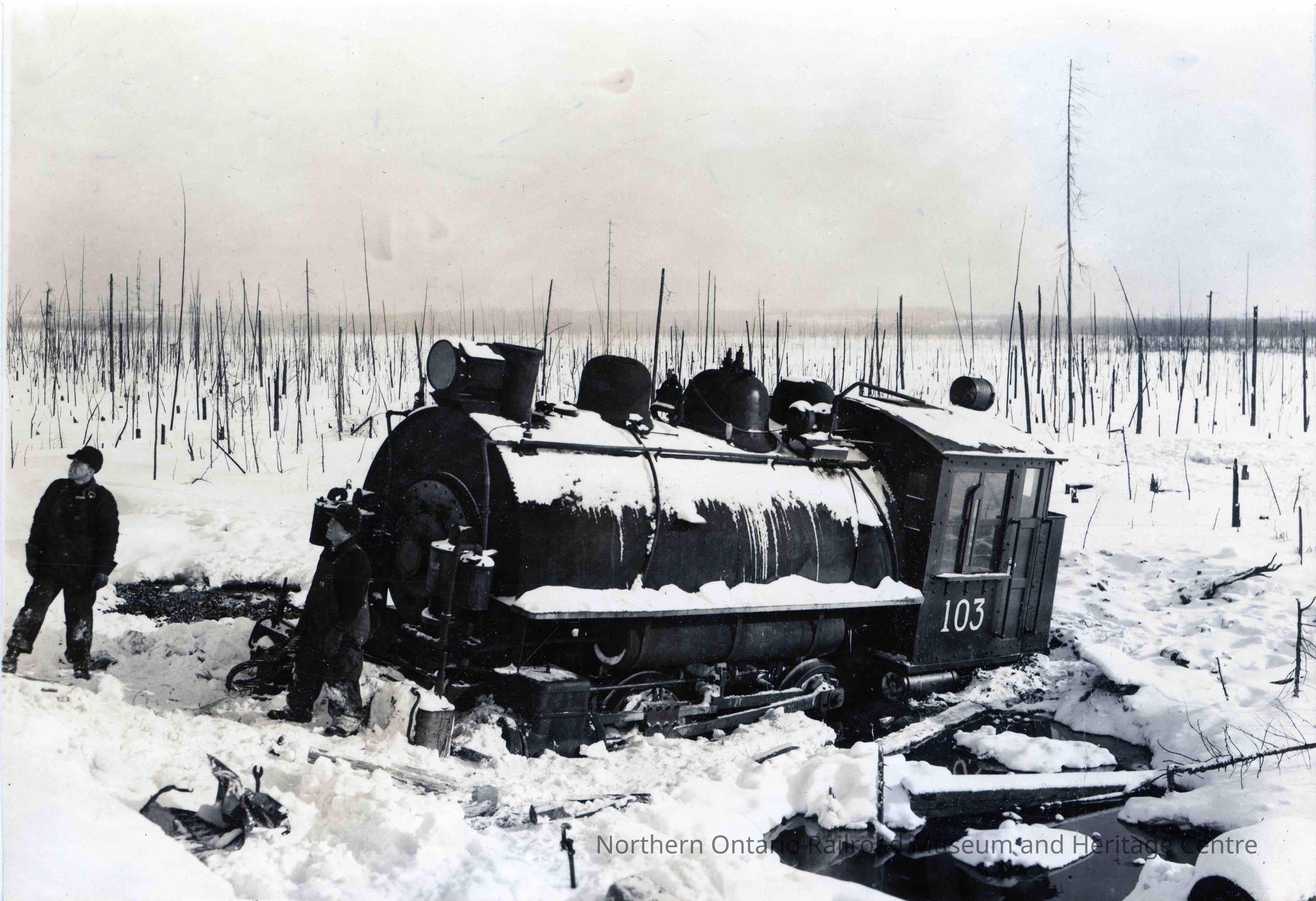 Photograph, Falconbridge Yard Locomotive 103, Used to Haul Molten Slag for Disposal, Fallen 25 Meters Down the Slag Pile into a Marsh.Collection