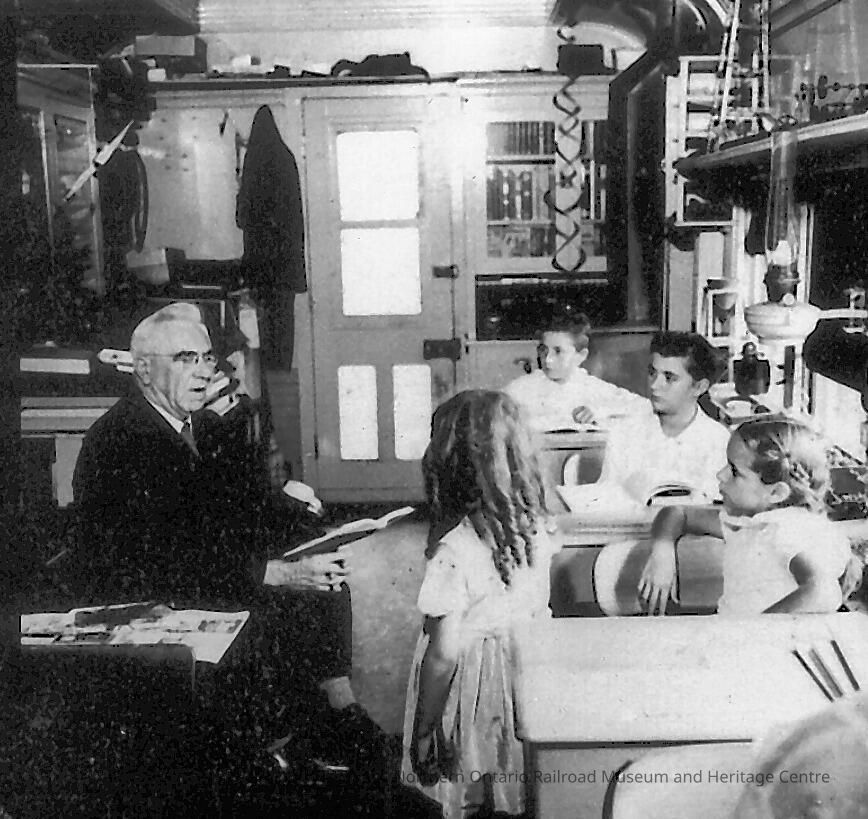 The CN "School on Wheels" program travelled along the CN track in Northern Ontario between Capreol and Foleyet for 39 years. Fred Sloman had one of the longest teaching tenures on the school car. This car has been preserved and set up as a museum in Clinton, Ontario.Collection
