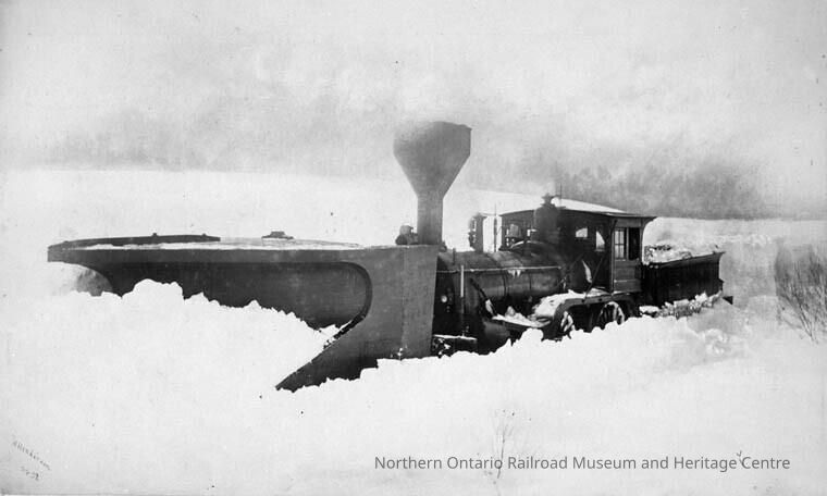 Photograph, Grand Trunk Railway. Engine and snowplow near Black River Station.Collection