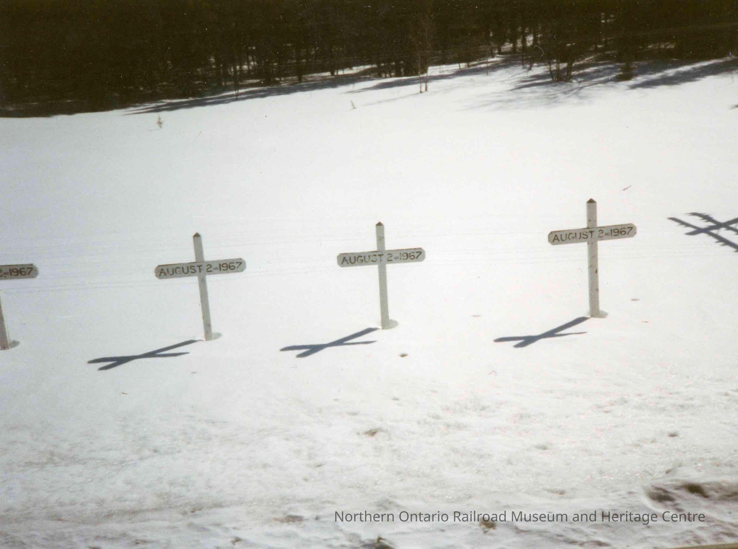 Photograph, Grave Markers at Hornepayne, Train Derailment.Collection