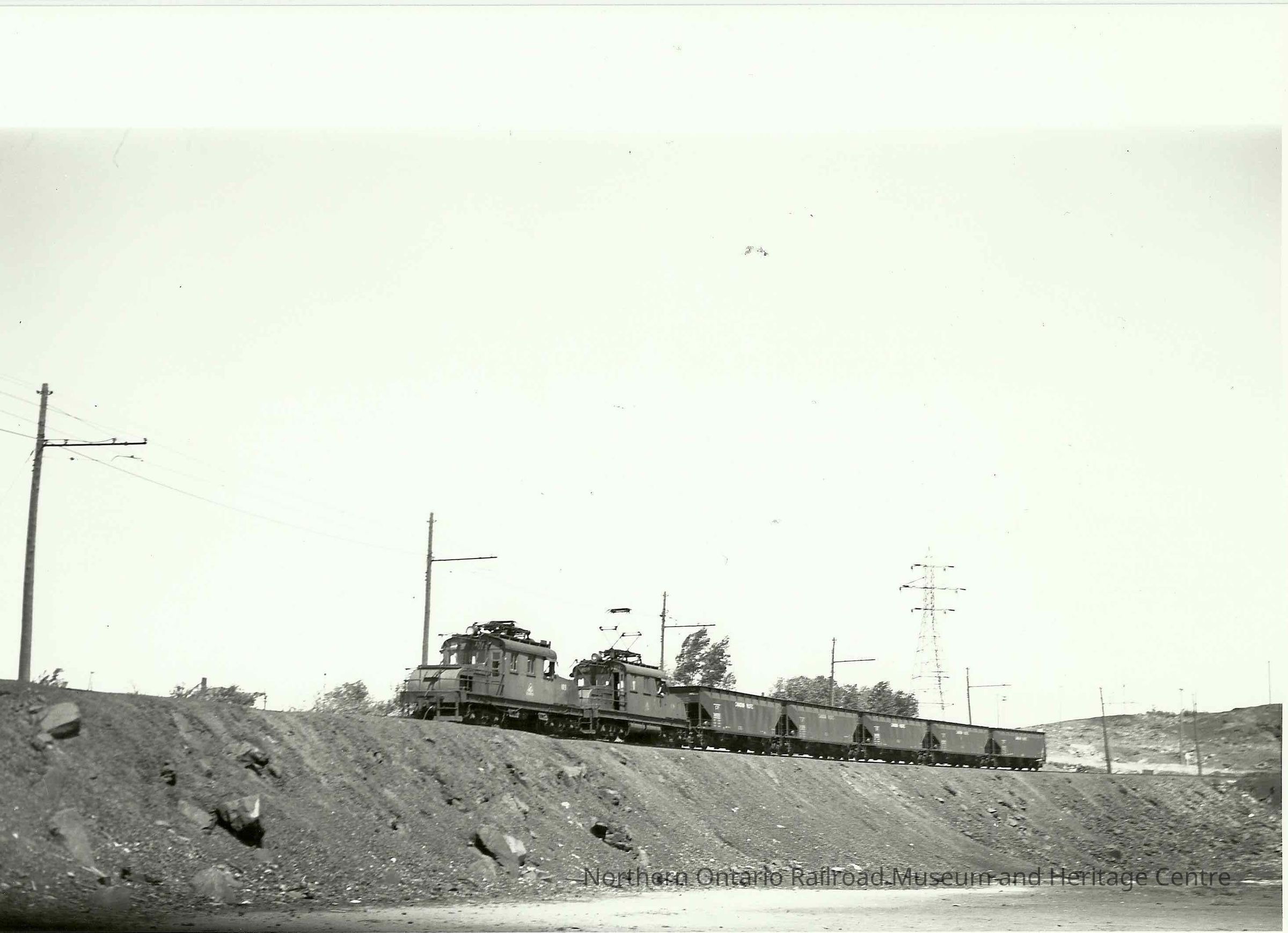 Photograph, INCO Electric Engines 103 & 104, Slag on Hill.Collection