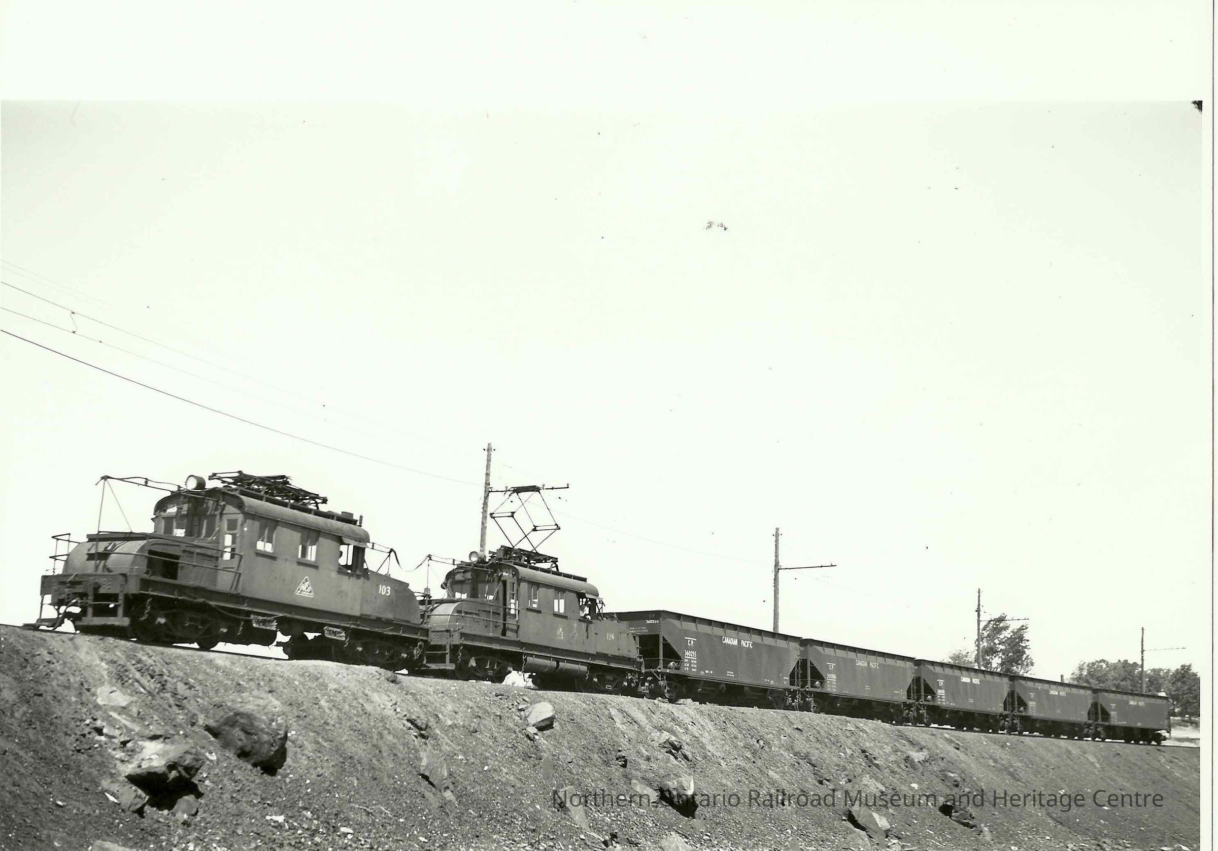 Photograph, INCO Electric Engines 103 & 104, Slag on Hill.Collection