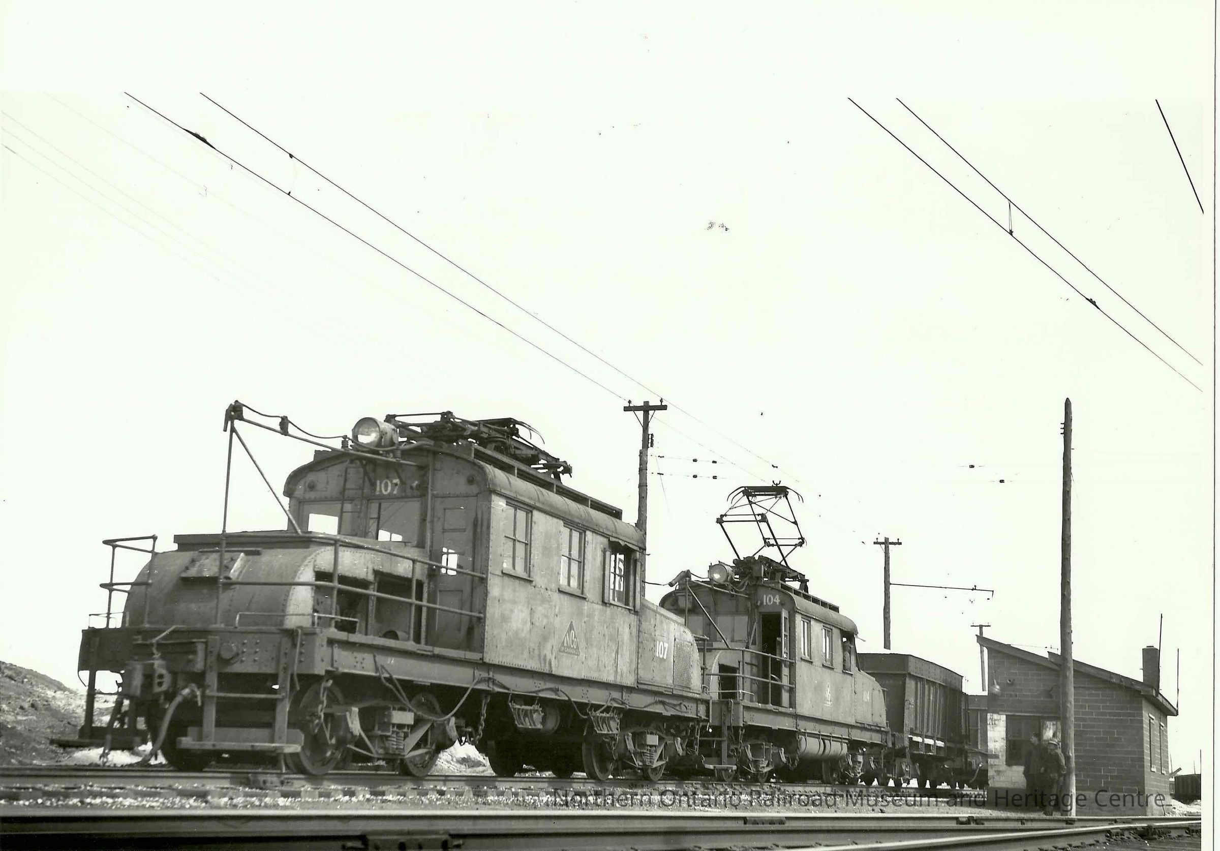 Photograph, INCO Electric Engines 107 & 104, East Scales.Collection