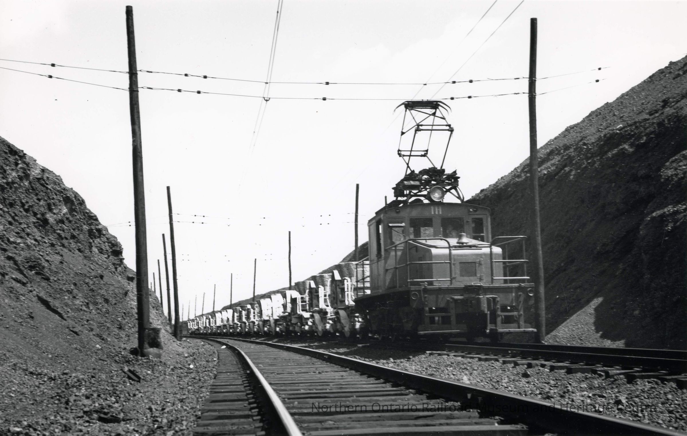 Photograph, INCO Locomotive 111, Hauling Slag Cars.Collection