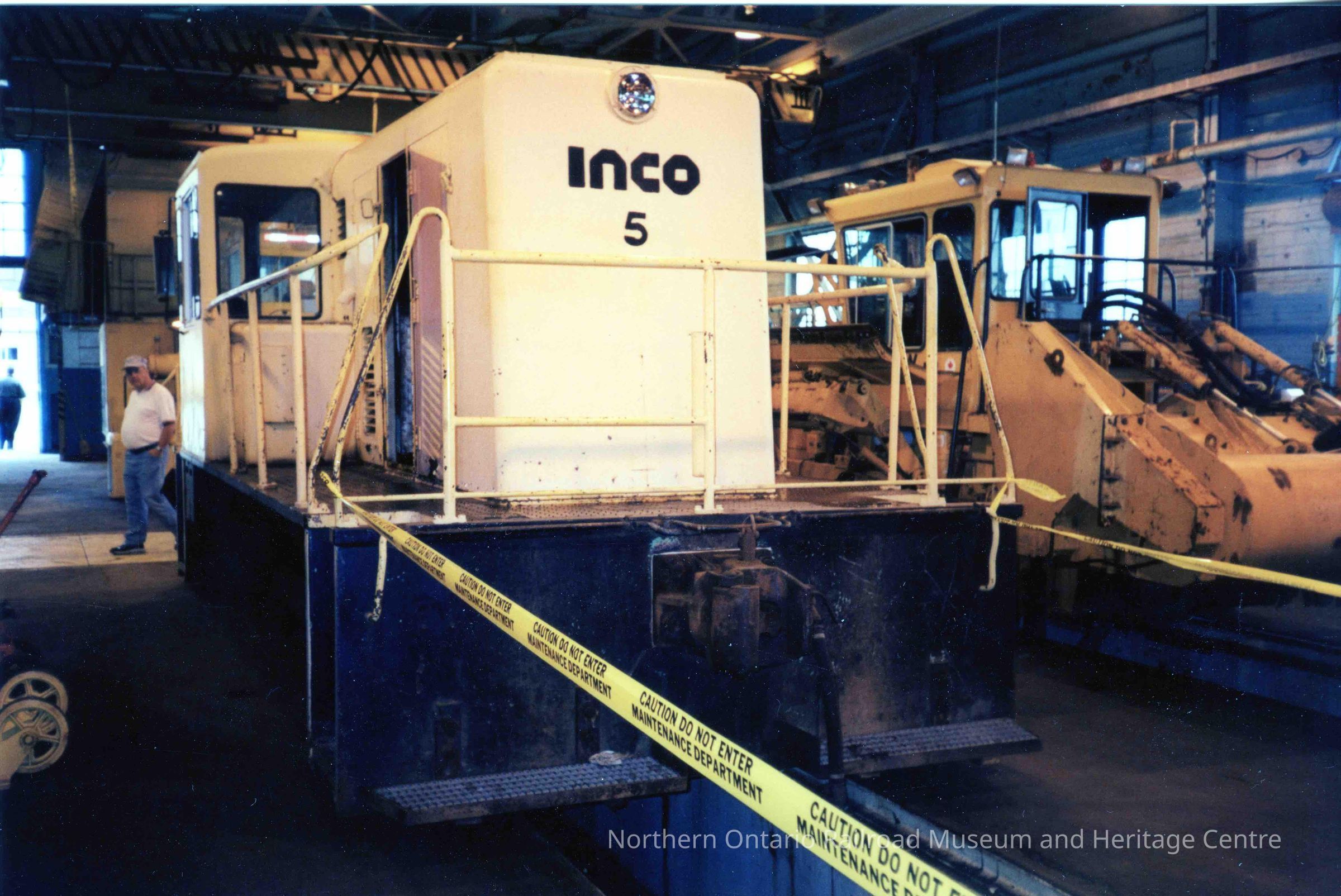 Photograph, INCO Locomotive 5 in shop.Collection