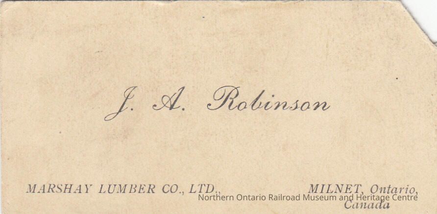 Black and White- A business card distributed by J. A. Robinson, who worked for the Marshay Lumber company.Collection