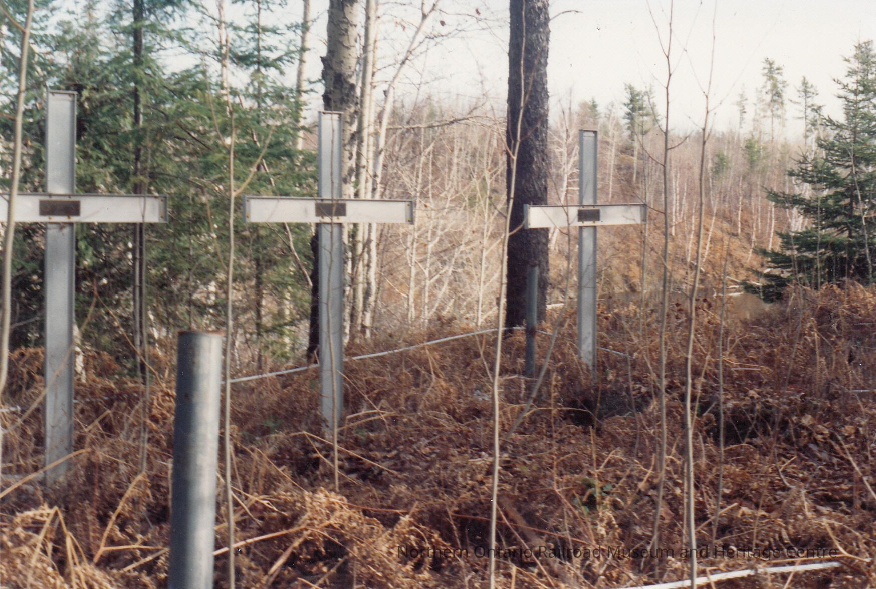 Colour- Three crosses stand amid ferns to mark three graves belonging to members of the Shpaiuk and Jaworski families.Collection