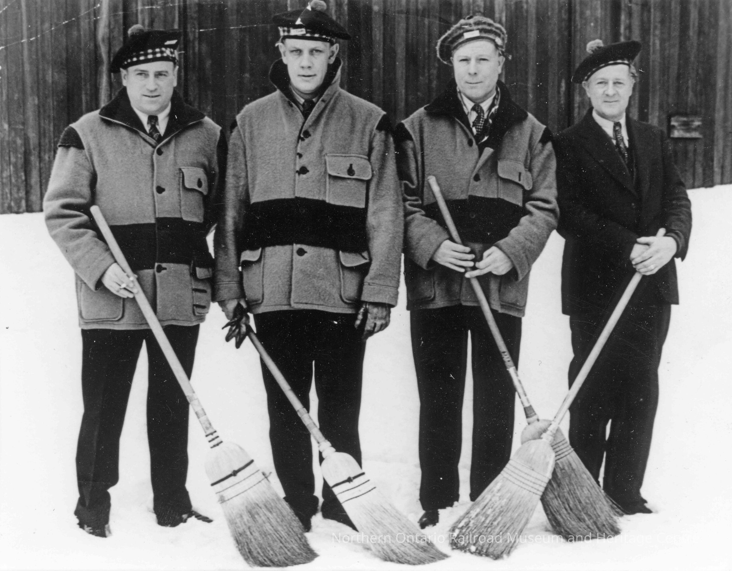 Photograph, JH Spiers, WG Johnson, HB Deavy, L Eloos, one of 4 Capreol Curling Rinks at NOCA Bonspiel in Sault Ste Marie, skipped by JH Spiers.Collection
