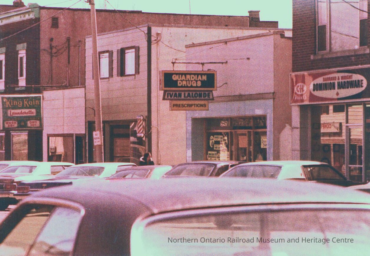 Photograph, King Koin, Guardian Drugs, Dominion Hardware, Capreol, Ontario.Collection