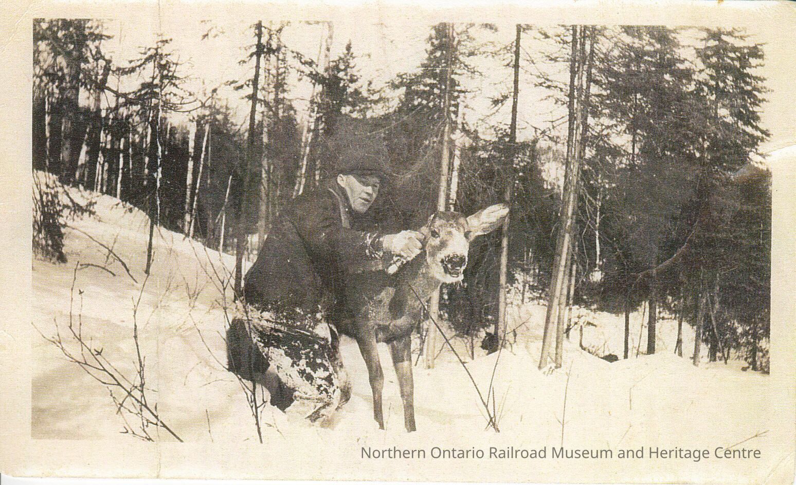 Photograph- Man with Moose CalfDescription