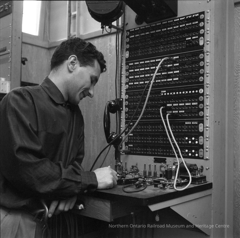 Photograph, Man working at the Canadian National telegraph and cable office, Kitimat, British Columbia .Collection