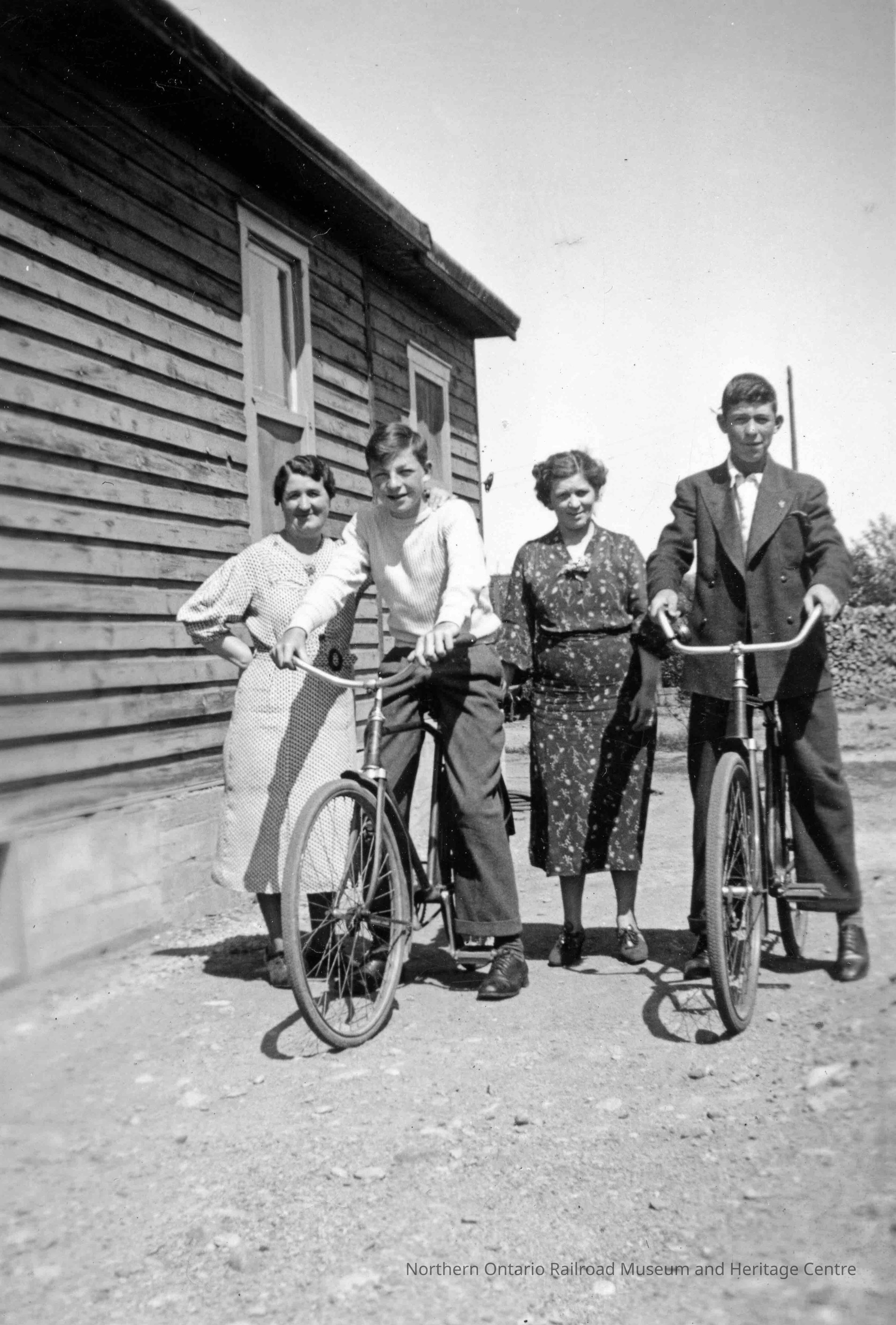 Photograph, Mrs Bella Nesbit, Herb Smith (Shannon), Unknown, Matt Nesbit Jr, V Tagliabracci on Bicycles.Collection