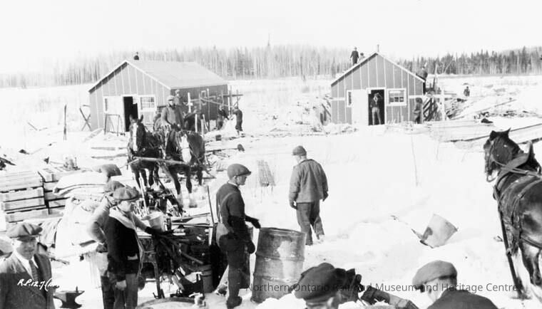 Photograph, Nakina, Ontario, Construction of buildings, April, 1933.Collection