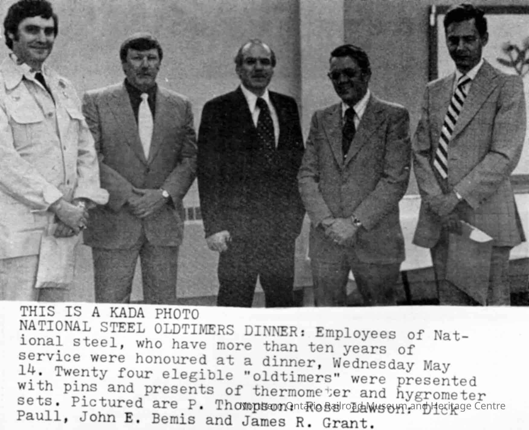 Photograph, National Steel Old Timers Dinner, P. Thompson, Ross Lawson, Dick Paul, John E. Bemis, James R. Grant.Collection