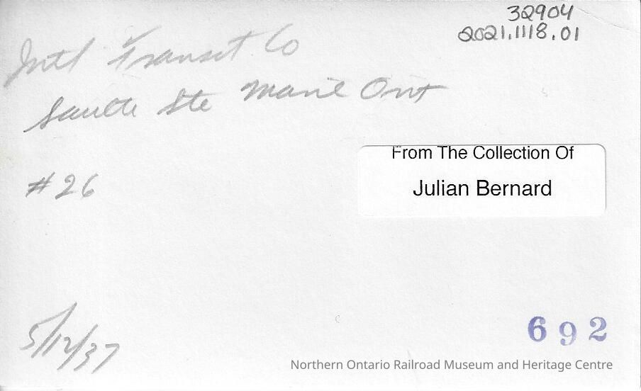 The International Transit Company, originally called the Sault Ste. Marie Electric Light and Transit Company was founded in 1888. By 1903 the name was changed to the International Transit Company. It originally ran streetcars, and continued to do so until 1942, when diesel buses took over. In 1942 the name changed again to Algoma Steel Corporation Transit, and by 1964 it was changed to the current name of Sault Ste Marie Transit Services.Collection