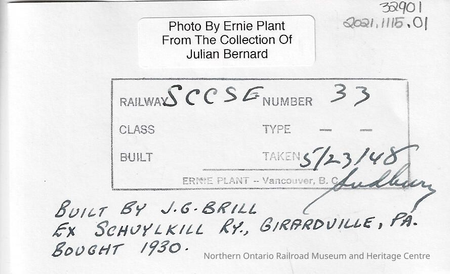 "Built by J.G. Brill Ex Schuylkill Ry., Girardville, PA. Bought 1930."Language