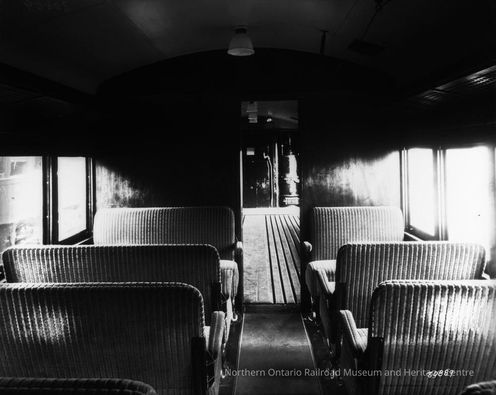 Photograph, Oil electric car, Inside passenger car 15831, showing baggage car.Collection