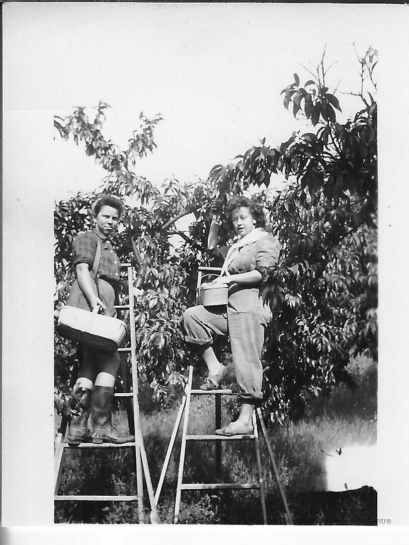 Inez Block and Maria Cervenak picking fruit at D'arcy Cropp CampCollection